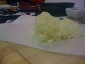 I grated the cheese and set it aside. I used about 3/4 of the wedge.