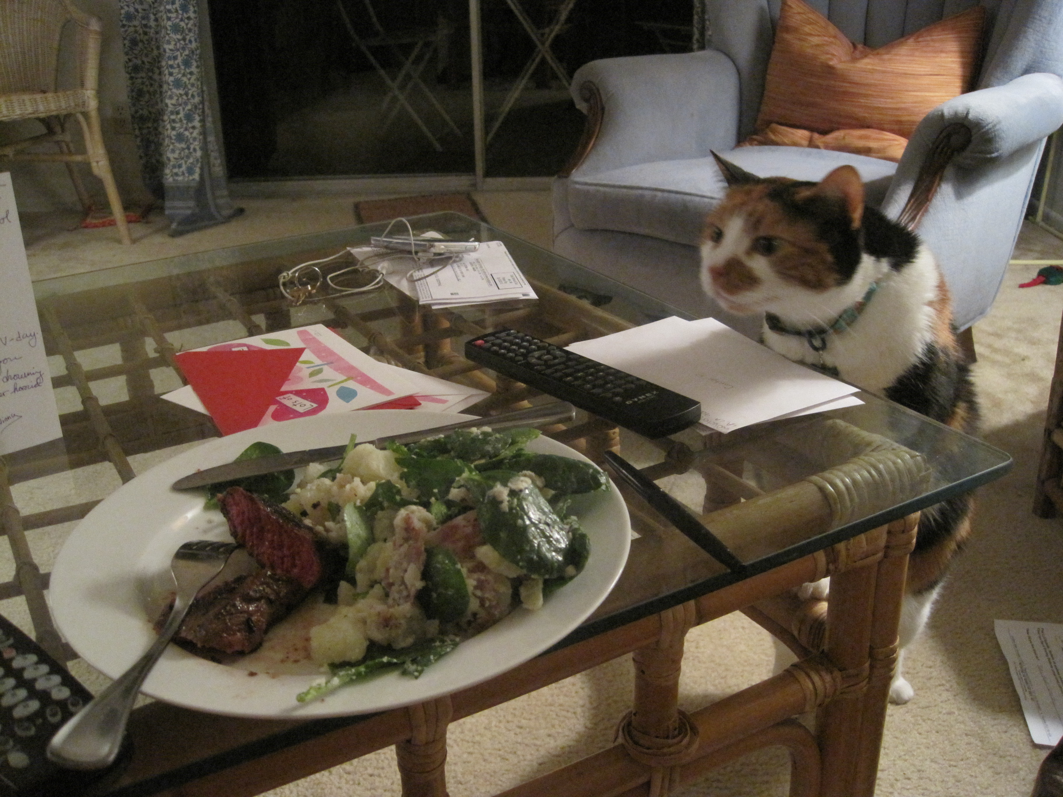 I like this last picture… Izzy is on a low carb wet diet and has rejected all the beef that has been presented to her. However, when I make human steak she is instantly interested…