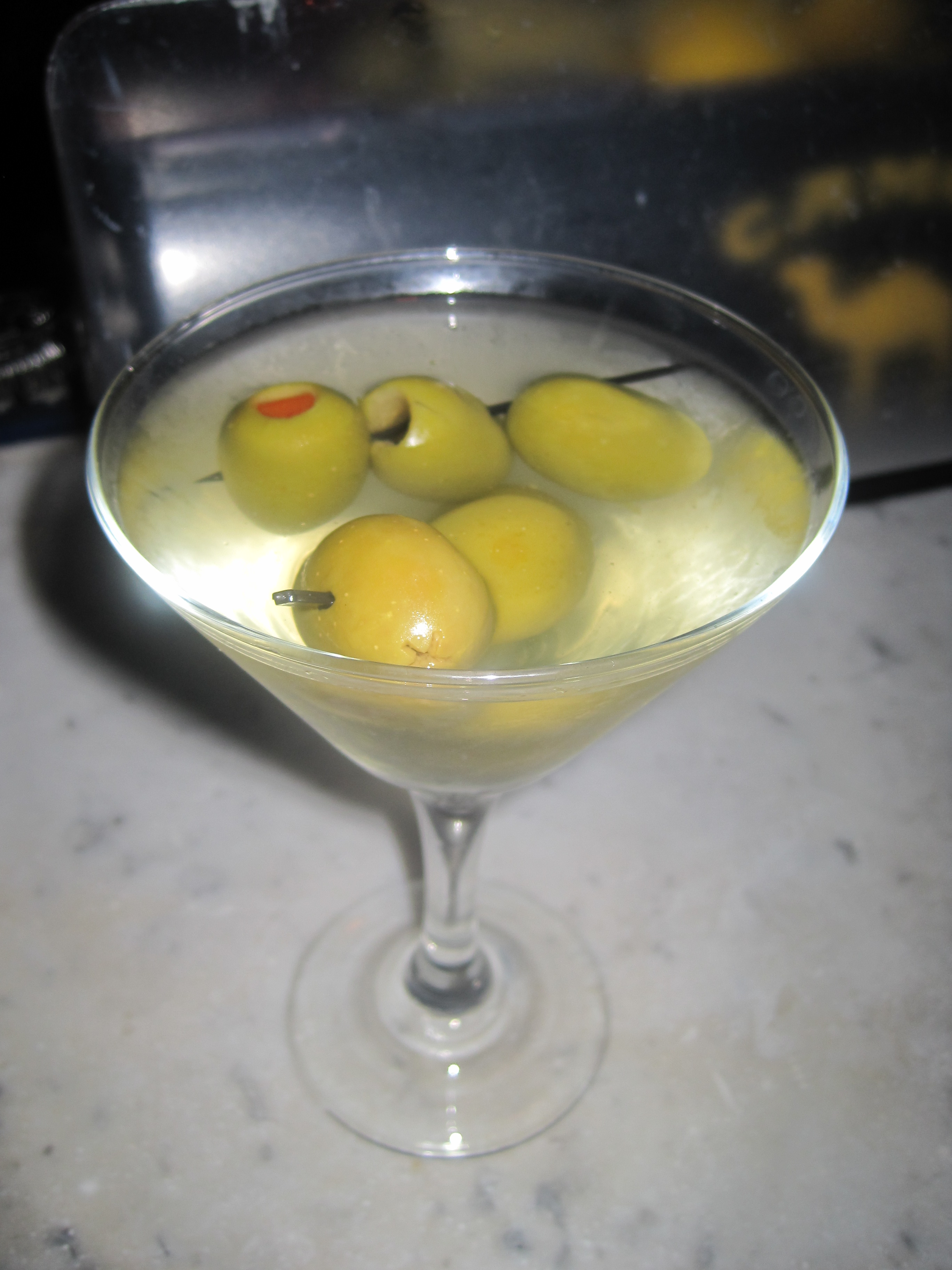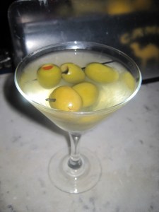 Last night was Thursday, which means going out. Bar Review this week was at Busby’s and I had my favorite cocktail: Dirty Bombay Martini, extra olives. So delicious.