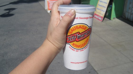 While strolling the Venice boardwalk on Sunday my Dad and I decided to stop for a hot dog at Jody Maroni’s.