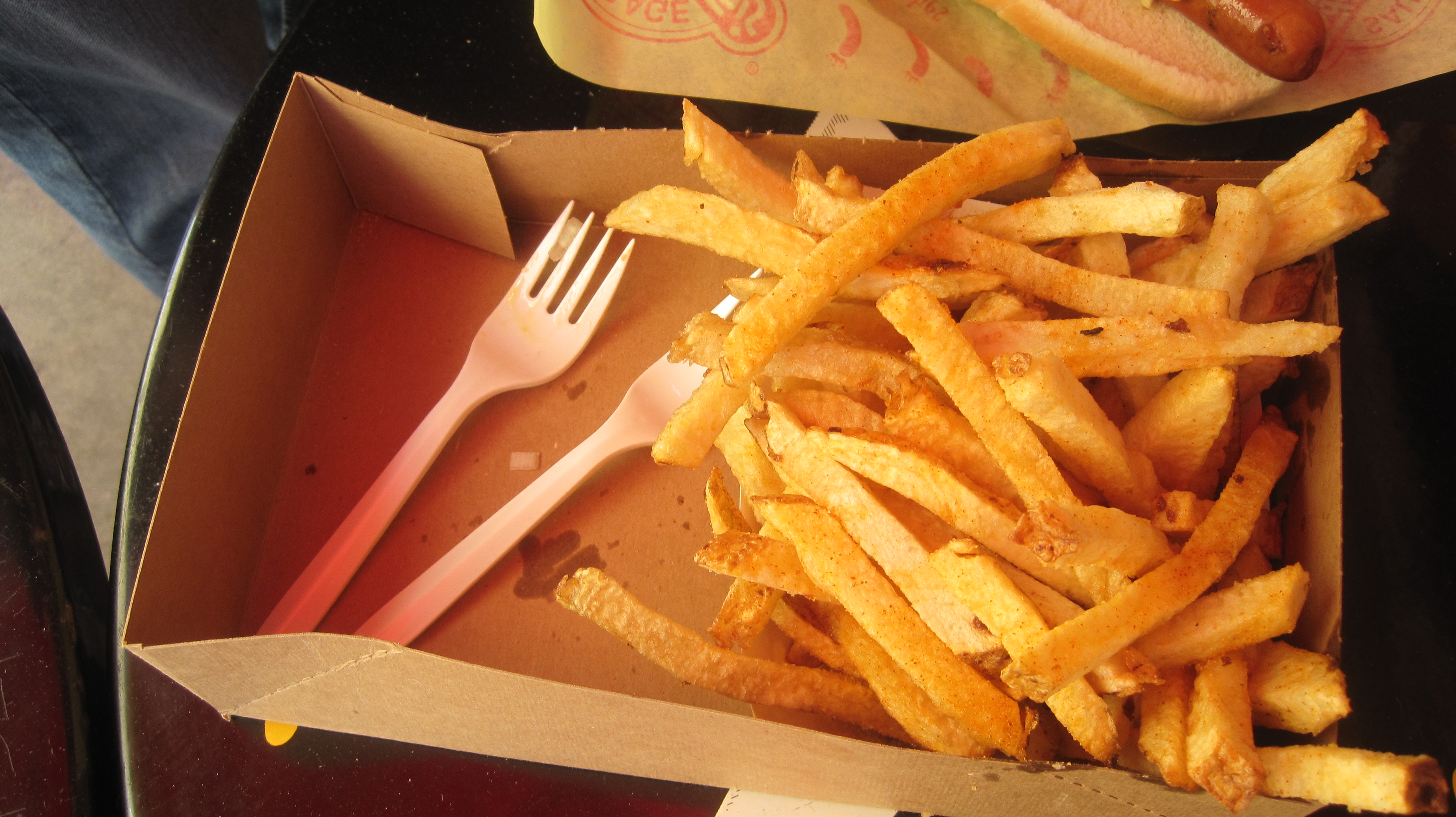 Being Chicagoians, we take our hot dogs seriously and high discerning standards. Dad got one but in true Chicago fashion only got mustard and onion.