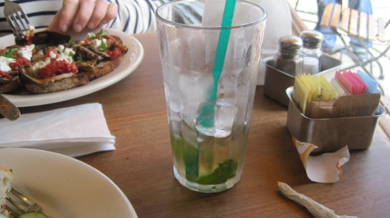 I ordered the rare roast beef sandwich with horseradish, marinated onions and arugula. It was so good and it came with a side of pickles! I also had a mint iced tea: