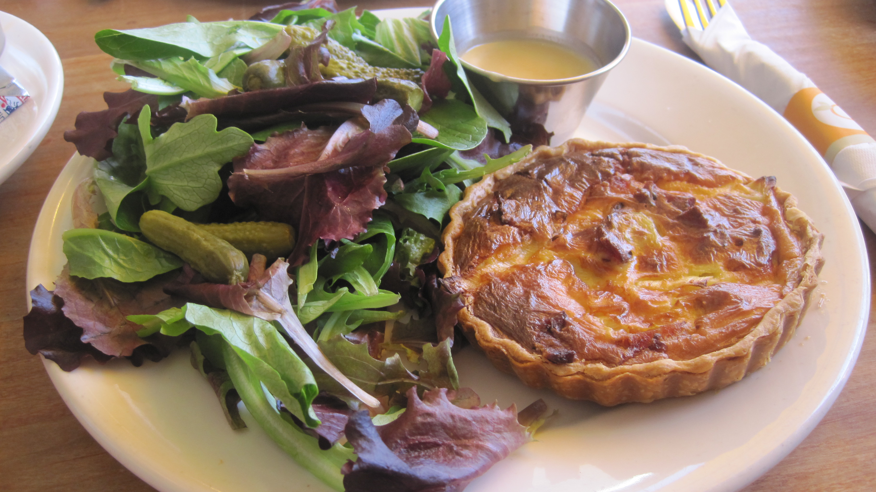 I had the bacon and leek quiche with a side salad. It was very good. I also had an ice tea and we ordered hot buttermilk bisects.