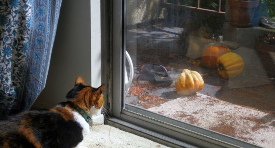 I have since removed the pumpkin but she remains obsessed. Literally, she has been stalking the screen and staring at the place where the pumpkin was for hours. Poor thing. Goodnight, bloggies!