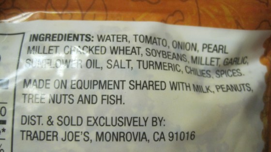 I love Trader Joe’s Multigrain Pilaf because there are only a few ingredients and I know what all of them are and its well spiced. How can you argue with that? While cooking I snacked on this…