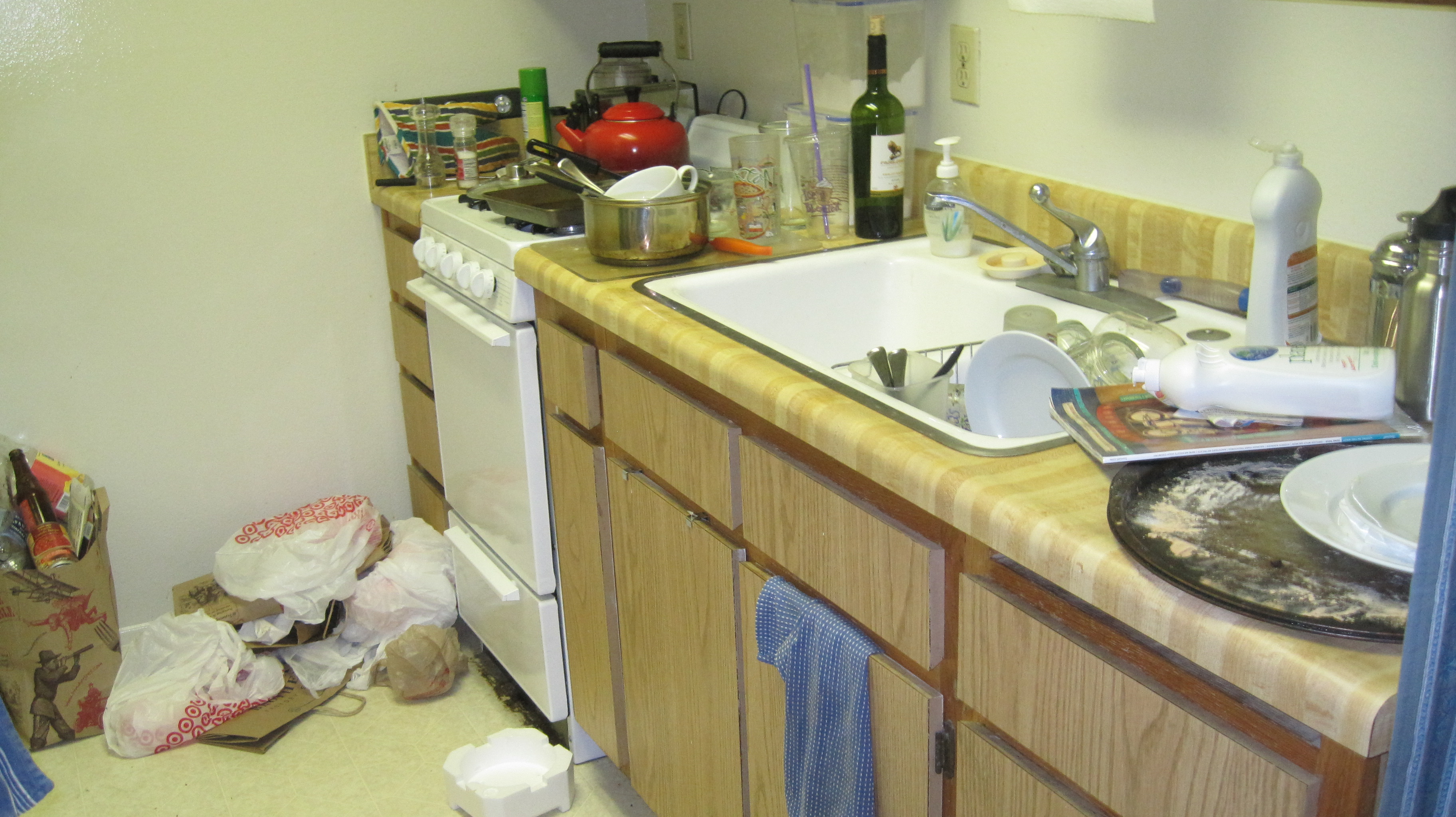 HOT KITCHEN MESS YA’LL! The sink is being worked on… still being worked on? The cabinets were open when I got home, there was no note… I’m unsure if I can use the sink so I was very happy I had take away. Izzy seemed completely traumatized. Don’t worry she got some party mix for her troubles.