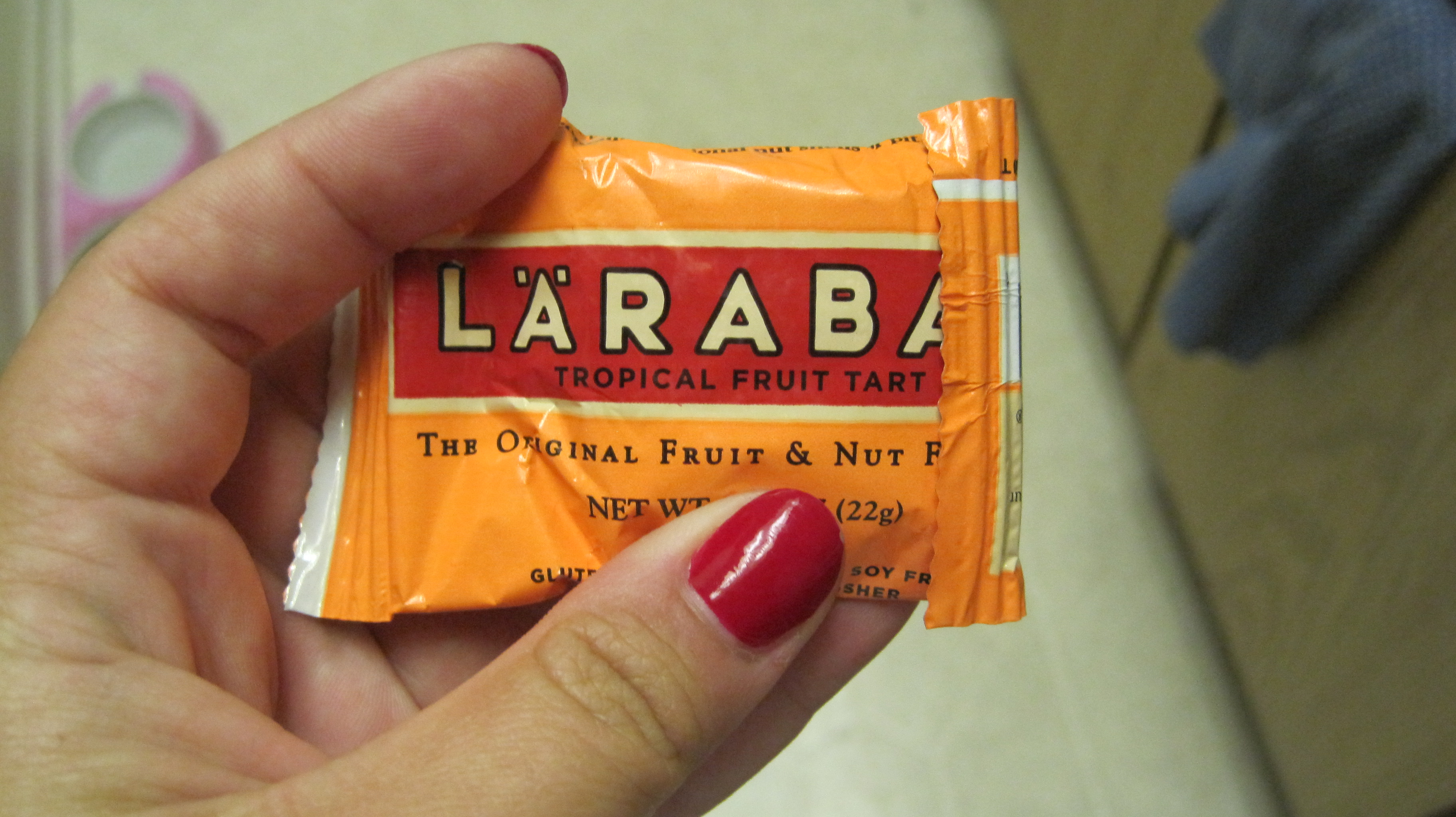 I enjoyed this 100 calorie larabar and I had this piece of peanut butter toast, which I only had 1/2 of.