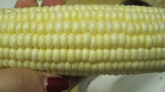 As a Midwesterner I am skeptical of CA corn. However, my mother was with me last week at the FM and taught me how to evaluate corn to determine if its good. Mostly you want to see that the kernels are large and in a row. You also want the husk to be damp. At my FM some of the corn was already shucked which I was told is bad and will dry it out. Shucking corn isn’t that hard, don’t buy it pre-shucked.