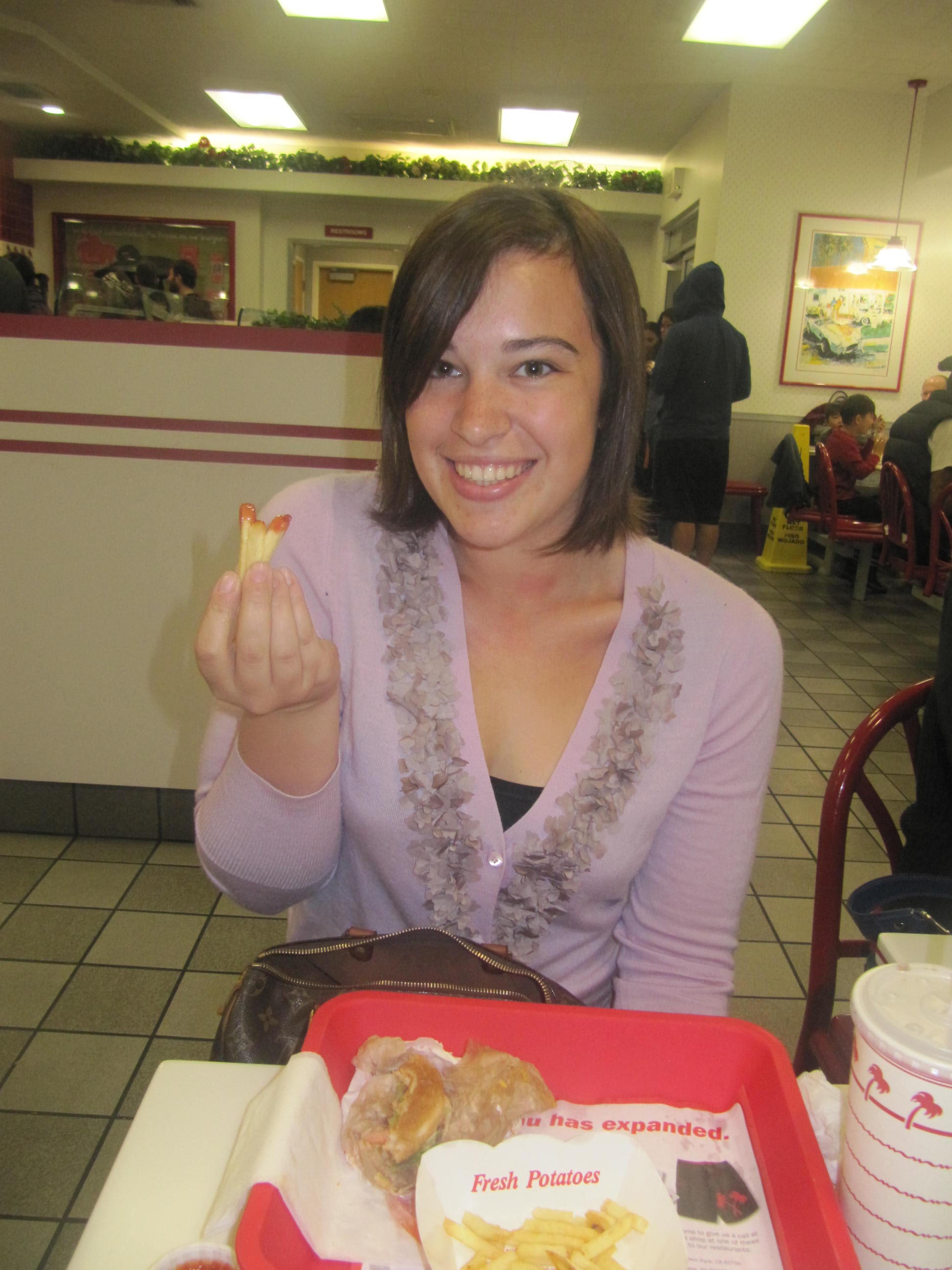 I’ve interrogated the calorie counter for In & Out many times and in order to maintain some semblance of health I decided not to get anything animal style (which includes 1000 Island sauce and grilled onions) and to split regular fries with Catie because the fries come in around 400 calories.