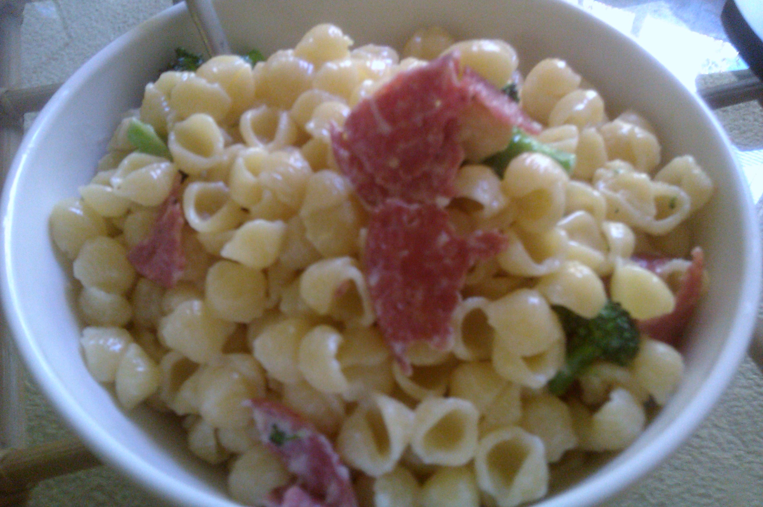 For lunch I was crafty. I made mac & cheese but added broccoli and salami!