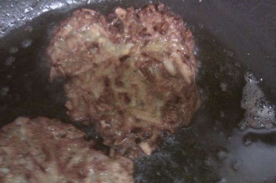 Then I fried them in olive oil. This is different than I did with the last potato pancakes. I actually liked the taste better. It was less heavy then the canola oil.