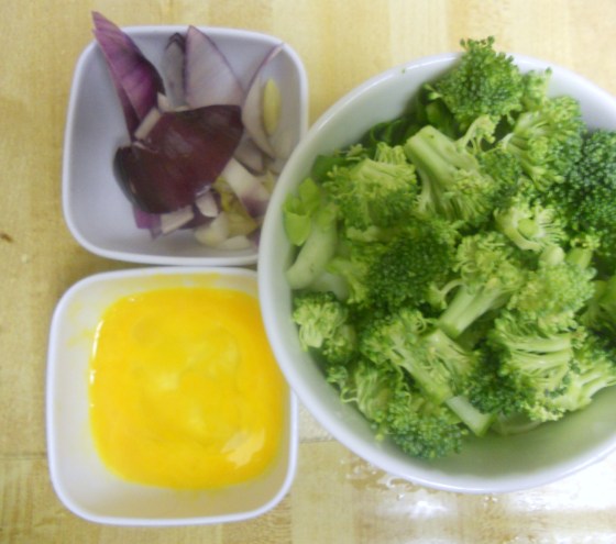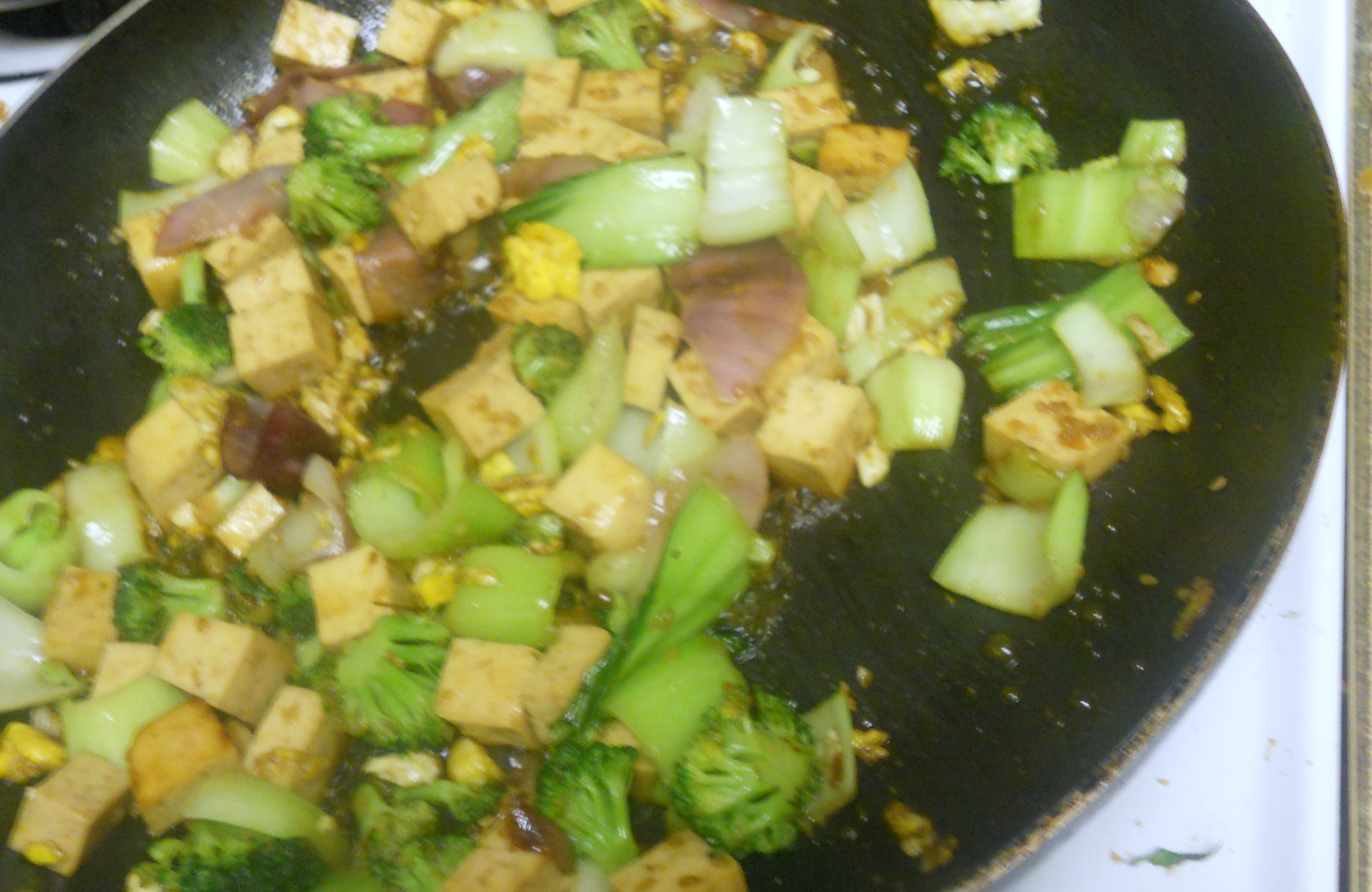 Short on veggies. I added garlic, egg, broch, bok choy and red onion (one of these things isn’t like the other).