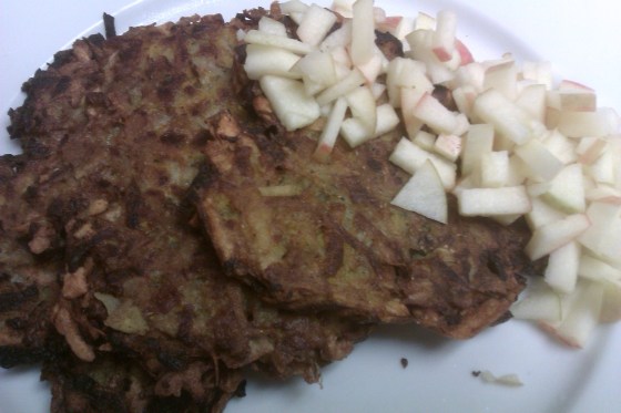 Today, in my rush to find and eat something lunch appropriate, I happened onto a delicious variation. I call it can’t win them all latke salad.