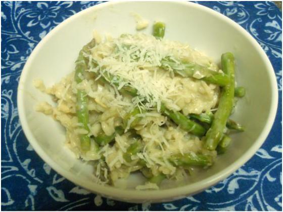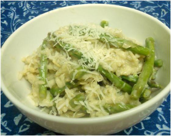 When I was in college I had two “favorite” dining hall meals: potato pancakes and risotto. I don’t know what it was about Bartol’s (the dining hall) risotto but I couldn’t get enough. I think the key to what made it awesome (besides lots of oil, because let’s face it, everything in Bartol was doused in oil) was the creaminess. I’ve been playing around with risotto recipes for the past two years and I think this is the perfect risotto. It’s creamy, has vino flavor and features farmer’s market fresh asparagus. Plus, it’s relatively quick and easy to make!
