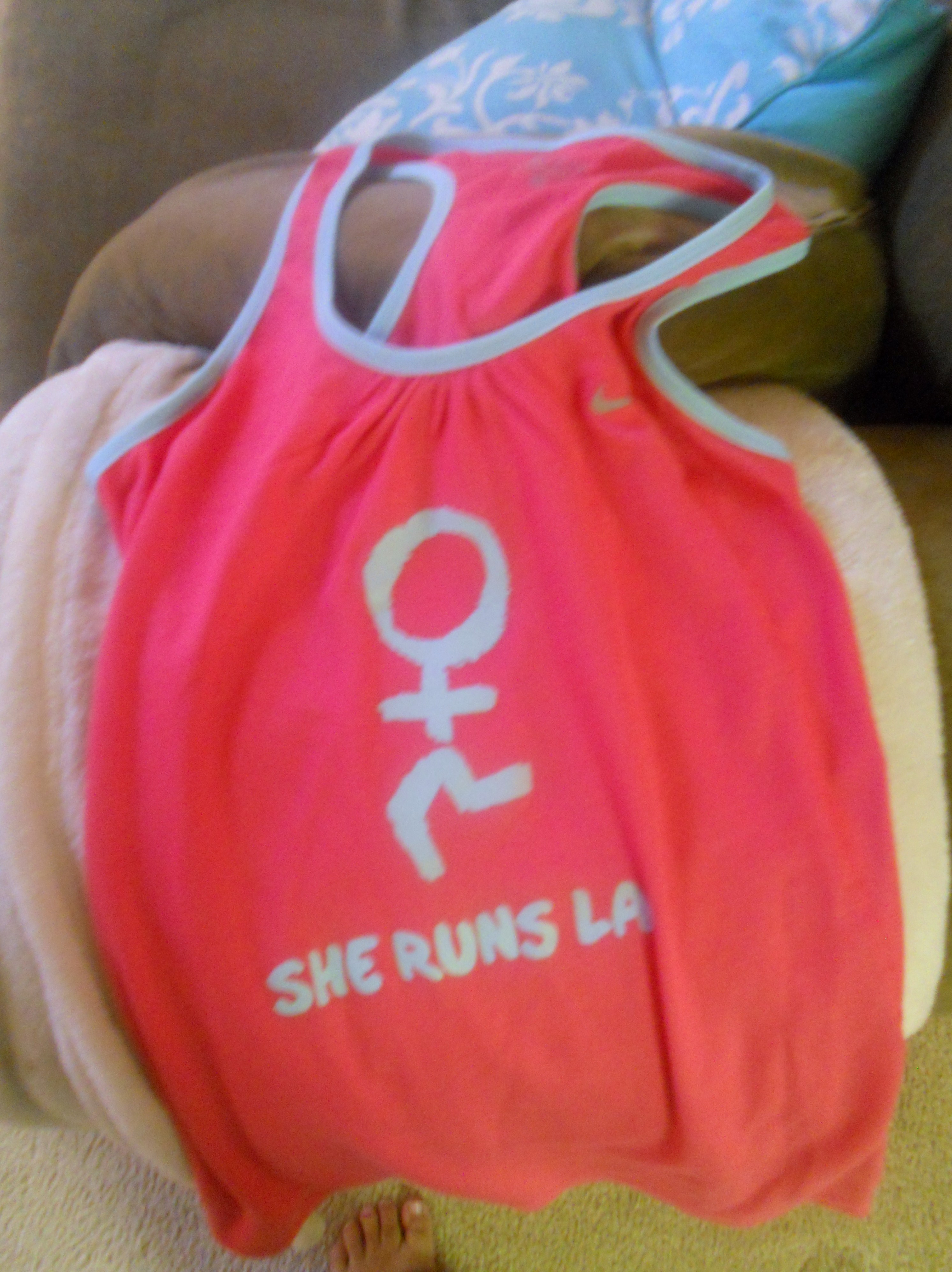 Love the race shirt! I left around 2:30 pm and it was almost 80 degrees and sunny! A little warmer than I typically like, but it was OK. Like a champ I forgot my water bottle so I made sure I took ample water fountain breaks and a couple stop light breaks. It was HOT. I ran a bit slower plus I didn’t have my usual “I’m running a race” adrenaline boost and I finished in about an hour. When I was running I saw another person chugging along in a She Run’s LA shirt. It was really exciting to see another person doing the same thing I was doing. I love the collective idea.