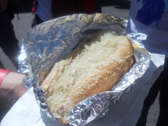 After about 20 mins of standing around and 2 mins of actual searching we were able to isolate the sausage man. I had a pork sausage with sauerkraut and mustard. I’m pretty sure I drunkenly explained Chicago sausages to the sausage man (and how we only like onions and mustard on our sausages). I’m sure I was highly entertaining at this point in the afternoon.