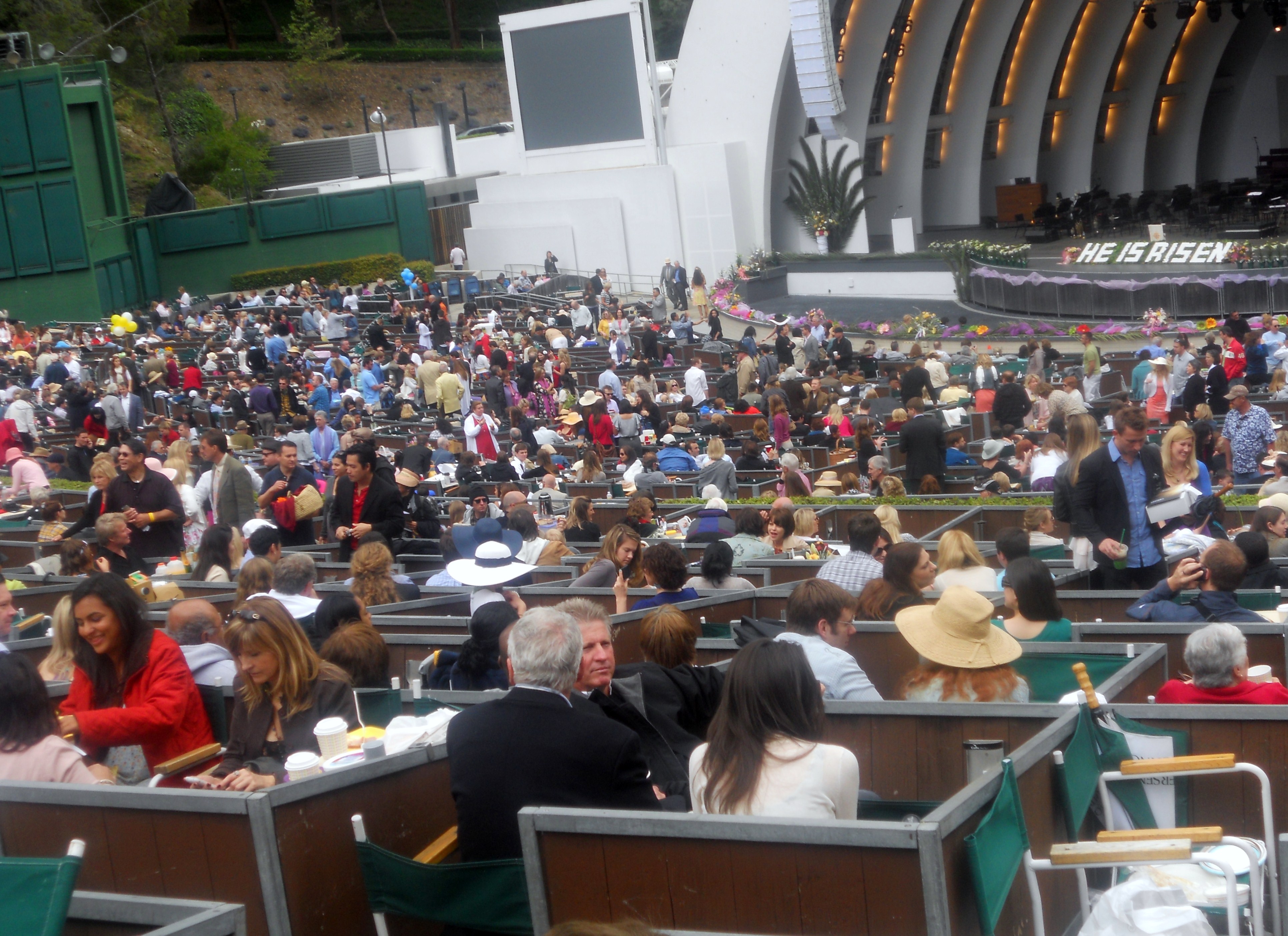 My friend Josh’s church, Bel Air Presbyterian, rents out the Hollywood Bowl each Easter for an epic Easter service! This is Easter with the works! There is a full orchestra, choir, tons of singing, and “He is risen” written in large letters across the stage. Our group was able to snag a box and we came prepared with treats and even mimosas.