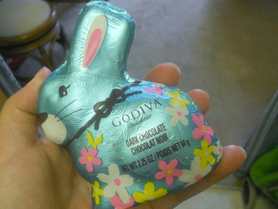 Sorry little guy! Btw- dark chocolate from Godiva? LCCMom knows me too well! Hey, at least this year I’m only eating my chocolate bunny and not my little brothers. I would nevvvvvver steal a chocolate bunny that wasn’t mine.  😉
