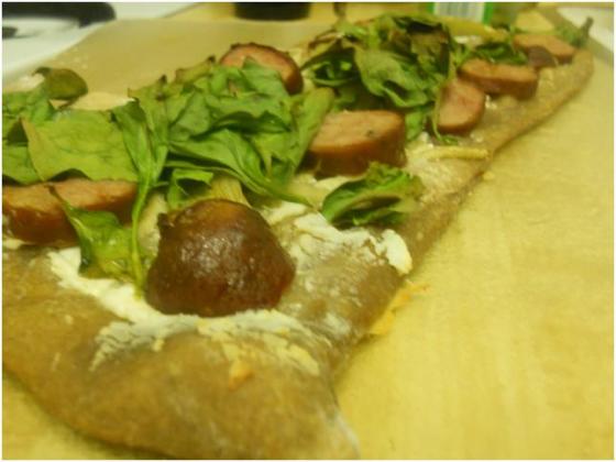 I wasn’t totally sure how this pizza would turn out. I used a WEIRD combo of flavor combinations. I mean sausage, fennel, and goat cheese? Perhaps surprisingly, this was pretty damn good if I do say so myself.