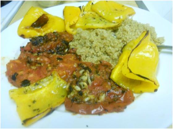 I elected to eat my tomatoes with roasted pepper and quinoa so my plate ended up looking delicious and colorful!
