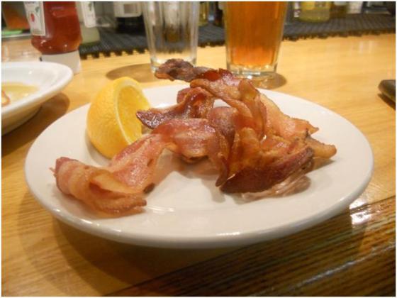 I ordered my favorite order: pancakes with a side of bacon and an iced tea.