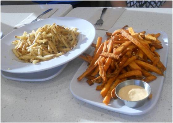 We ordered sweet potato fries with a chipotle aioli and parmesan fries.