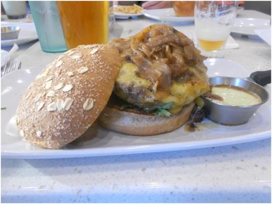 My beef burger came on a multi grain bun with mixed greens, cheddar cheese, caramelized onions and a wasabi aioli! I was very, very excited about the wasabi aioli and yes, I planned my entire burger around it. If you dine with me you know I frequently will plan my entire meal around a side dish. When wasabi aioli is in play can you really blame me? I love the spiciness it added to the burger. The bun was perfect because it wasn’t too much bread and the burger was meaty.