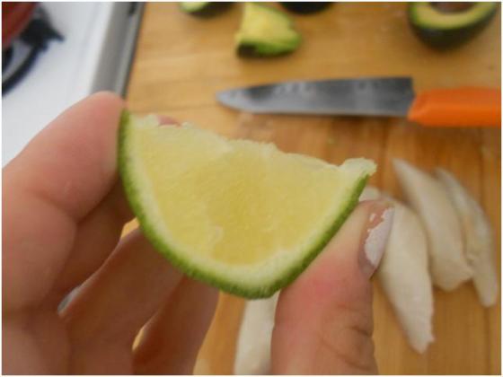Next, prep the fish. I used Traders Joe’s frozen tilapia. I sliced it thinly and seasoned it with lime and cayenne.