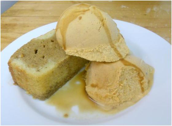 When I was ready to consume I sliced the pound cake, topped with my favorite fall ice cream (Trader Joe’s Pumpkin Ice Cream) and drizzled the coffee reduction over it.