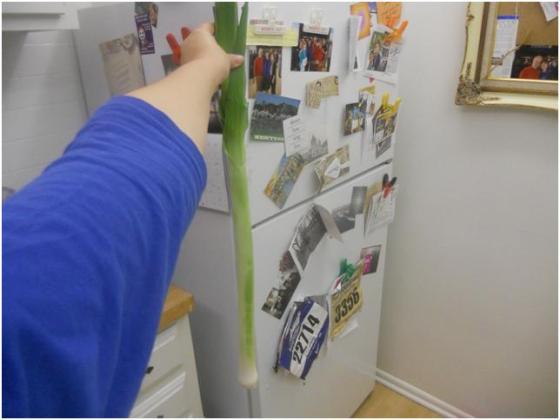 Then I took a pan and over low heat melted the butter. I also sliced the leek. The leek that I bought was legitimately longer than my arm. Fact: the Santa Monica Farmer’s Market is awesome. Please note my attempt to document the size of the leek below. I sautéed the leek over low heat until cooked though. Then I put them down on the dough as a base.