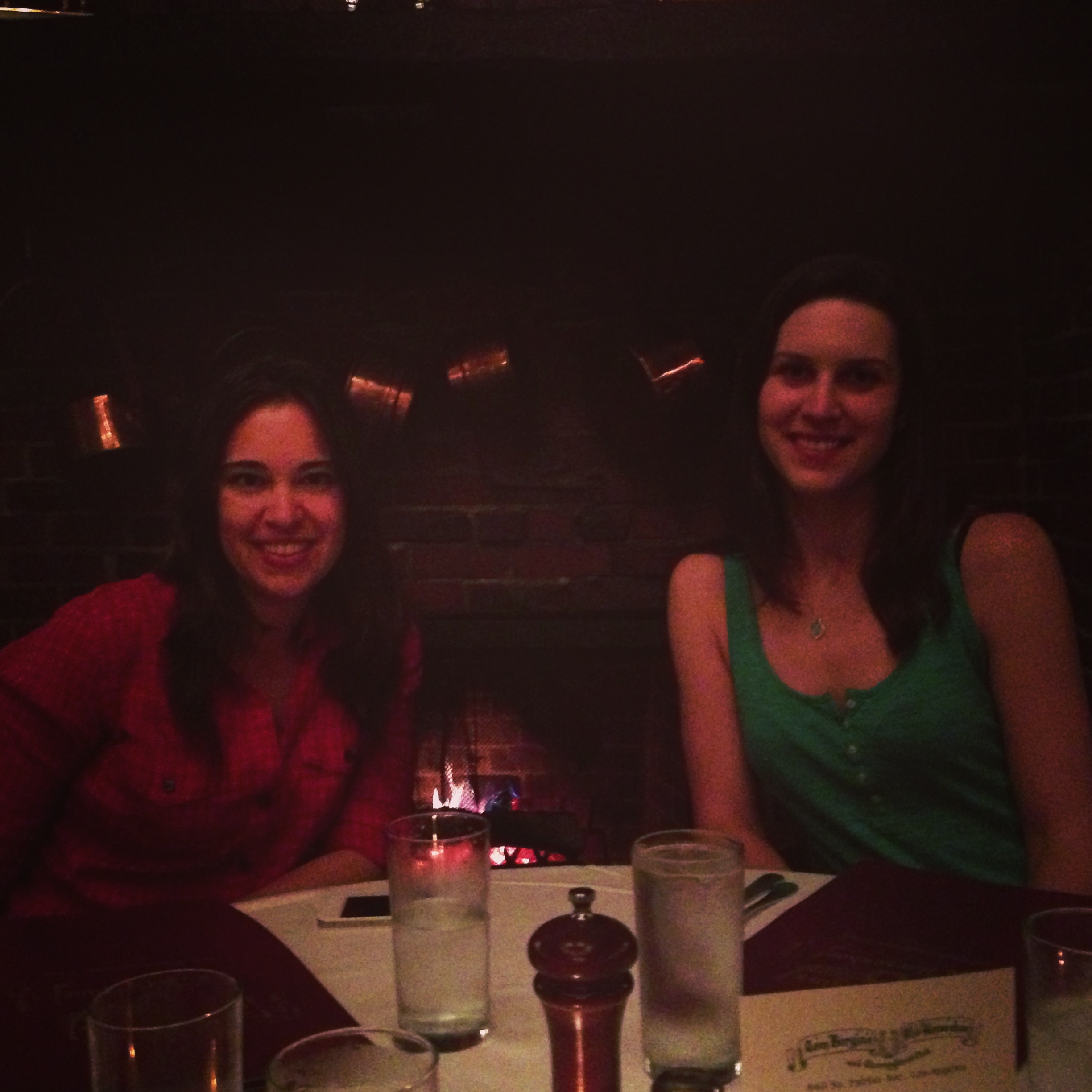 No photo of the food, bad blogger, but I did get this one of Chrissy and I by the Tom Bergin’s fire: